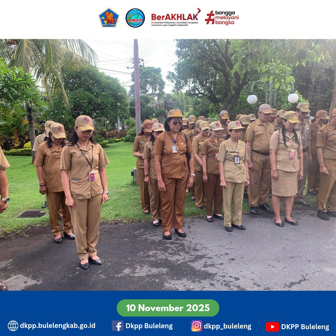 Senin, 10 November 2025 - Plt. Kepala Dinas Ketahanan Pangan dan Perikanan Kabupaten Buleleng Gede Melandrat, SP bersama jajaran mengikuti Upacara Bendera Peringatan Hari Pahlawan ke-80 Tahun 2025 bertempat di Halaman Kantor Bupati Buleleng. Peringatan Hari Pahlawan kali ini mengusung tema "Pahlawan Teladanku, Terus Bergerak, Melanjutkan Perjuangan"