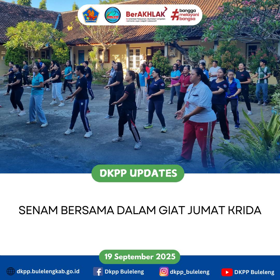 Jumat, 19 September 2025 - Giat Krida Dinas Ketahanan Pangan dan Perikanan (DKPP) Kabupaten Buleleng dengan melakukan senam bersama guna menjaga kebugaran dan imun tubuh.
