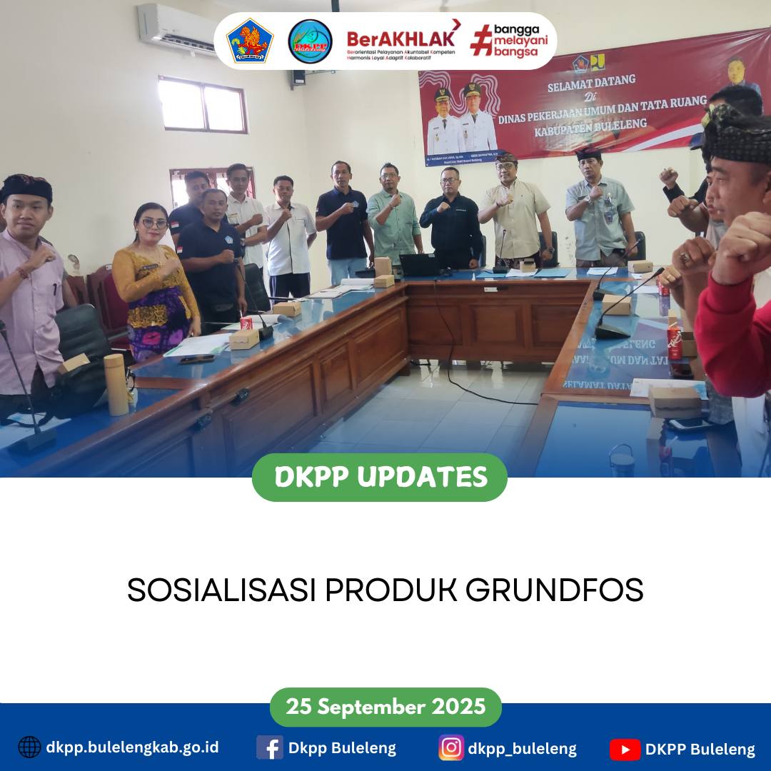Dinas Ketahanan Pangan dan Perikanan (DKPP) Kabupaten Buleleng mengikuti rapat sosialisasi produk grundfos yang diselenggarakan Dinas PUTR Buleleng. Rapat sosialisasi ini dibuka oleh Kepala Dinas PUTR dengan menekankan bahwa penggunaan pompa solar cell sangat dibutuhkan di buleleng namun alat harus mampu menjaga kualitas, kontinuitas dan ketersediaan air bawah tanah. (25/9)