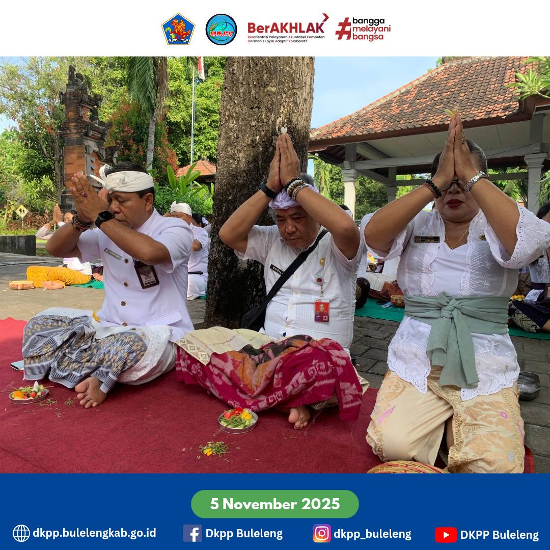 Persembahyangan bersama jajaran Dinas Ketahanan Pangan dan Perikanan (DKPP) Kabupaten Buleleng dalam rangka Rahina Purnamaning Sasih Kalima, yang jatuh pada Buda, 5 November 2025. Pada Kesempatan ini, hadir Plt. Kepala DKPP Buleleng Gede Melandrat, SP.
