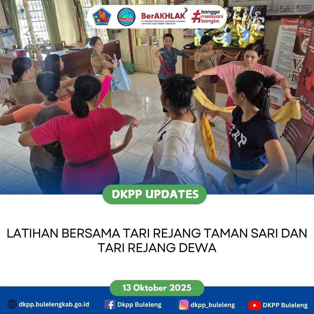 Tim Tari Rejang Taman Sari dan Tari Rejang Dewa Dinas Ketahanan Pangan dan Perikanan (DKPP) Kabupaten Buleleng melakukan latihan bersama dalam rangka persiapan Upacara Piodalan. (13/10)