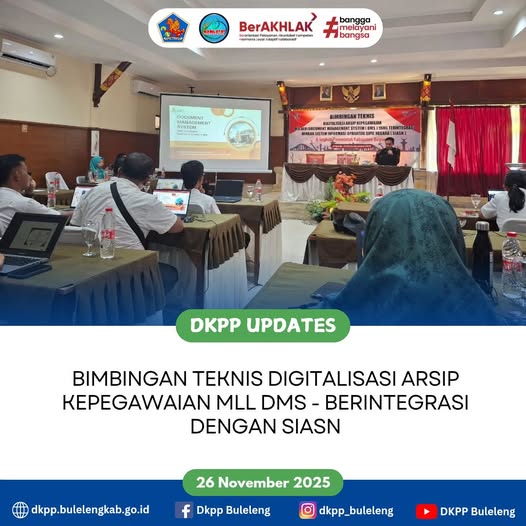 Plt. Sekretaris Dinas Ketahanan Pangan dan Perikanan Kabupaten Buleleng drh. Luh Gede Ira Yuniariani didampingi admin kepegawaian mengikuti Bimbingan Teknis Digitalisasi Arsip Kepegawaian mll DMS - berintegrasi dengan SIASN bertempat di Aneka Lovina.