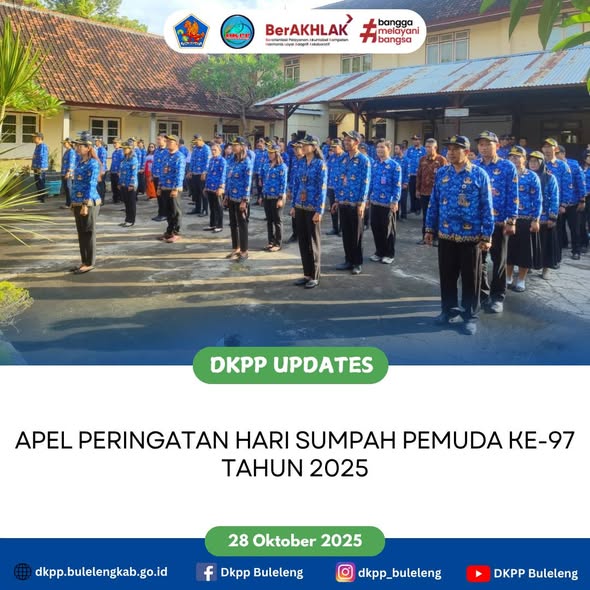 Selasa, 28 Oktober 2025 - Apel Peringatan HARI SUMPAH PEMUDA KE-97 TAHUN 2025 "Pemuda Pemudi Bergerak Indonesia Bersatu” yang diikuti jajaran Dinas Ketahanan Pangan dan Perikanan (DKPP) Kabupaten Buleleng.