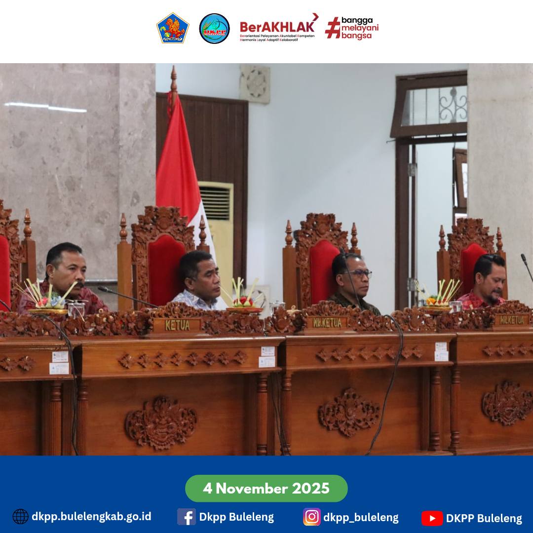 Plt. Kepala Dinas Ketahanan Pangan dan Perikanan Kabupaten Buleleng Gede Melandrat, SP. bersama Plt. Sekretaris Dinas menghadiri Rapat Paripurna Penyampaian Penjelasan Rancangan Peraturan Daerah (Ranperda) Kabupaten Buleleng tentang Anggaran Pendapatan dan Belanja Daerah (APBD) Tahun Anggaran 2026 di Ruang Sidang Utama Gedung DPRD Buleleng.