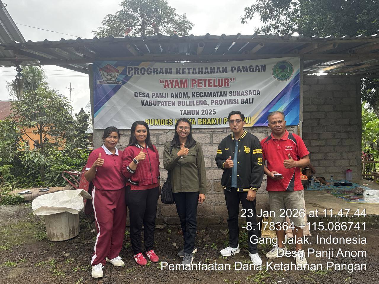 Desa Panji Anom mengalokasikan dana ketahanan pangan untuk penyertaan unit usaha BUMDes berupa ayam petelur. BUMDesa Karya Bakti Pertiwi membangun kandang ayam petelur dg kapasitas 1000 ekor mulai dari bulan Desember 2025 dengan ayam usia 16 minggu, saat ini mulai panen hingga 138 butir diharapkan panen optimal (80%) dalam 3-4 bulan kedepan