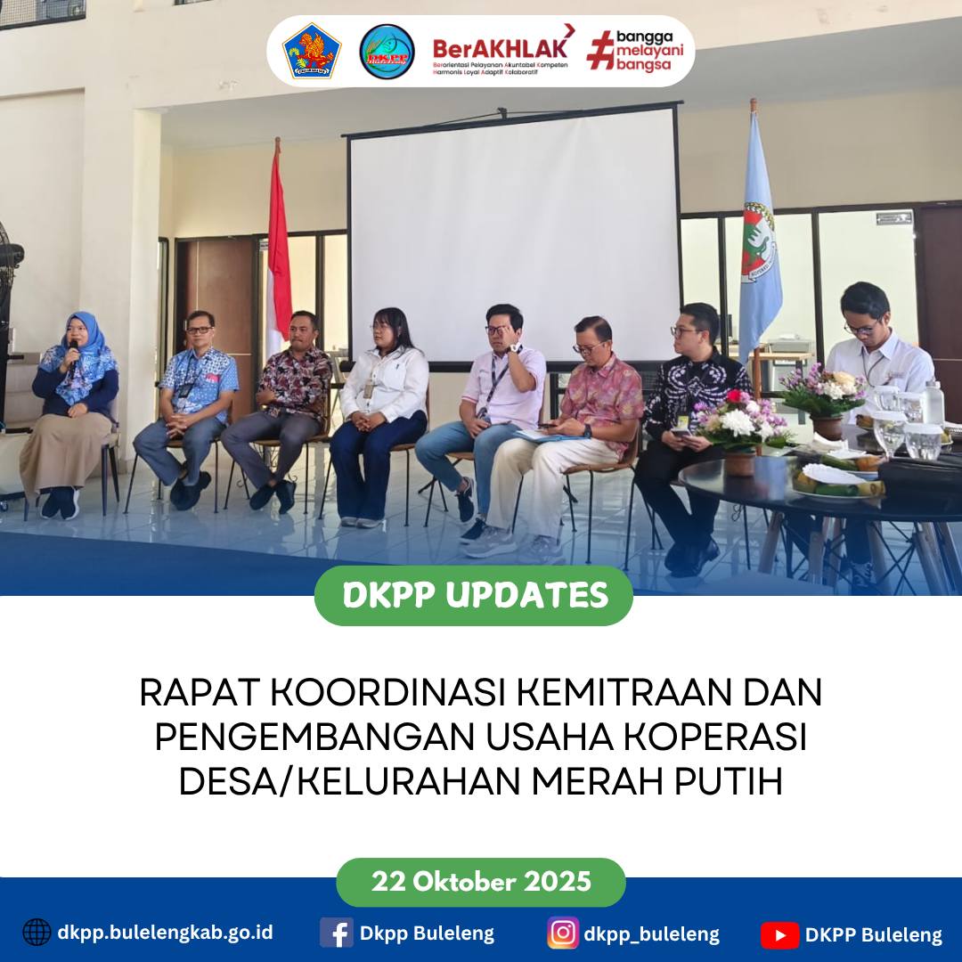 Dinas Ketahanan Pangan dan Perikanan (DKPP) Kabupaten Buleleng mengikuti rapat koordinasi kemitraan dan pengembangan usaha koperasi desa/kelurahan merah putih dengan menghadirkan perwakilan dari BUMN selaku Mitra dan pengurus KDMP seluruh desa wilayah barat Buleleng