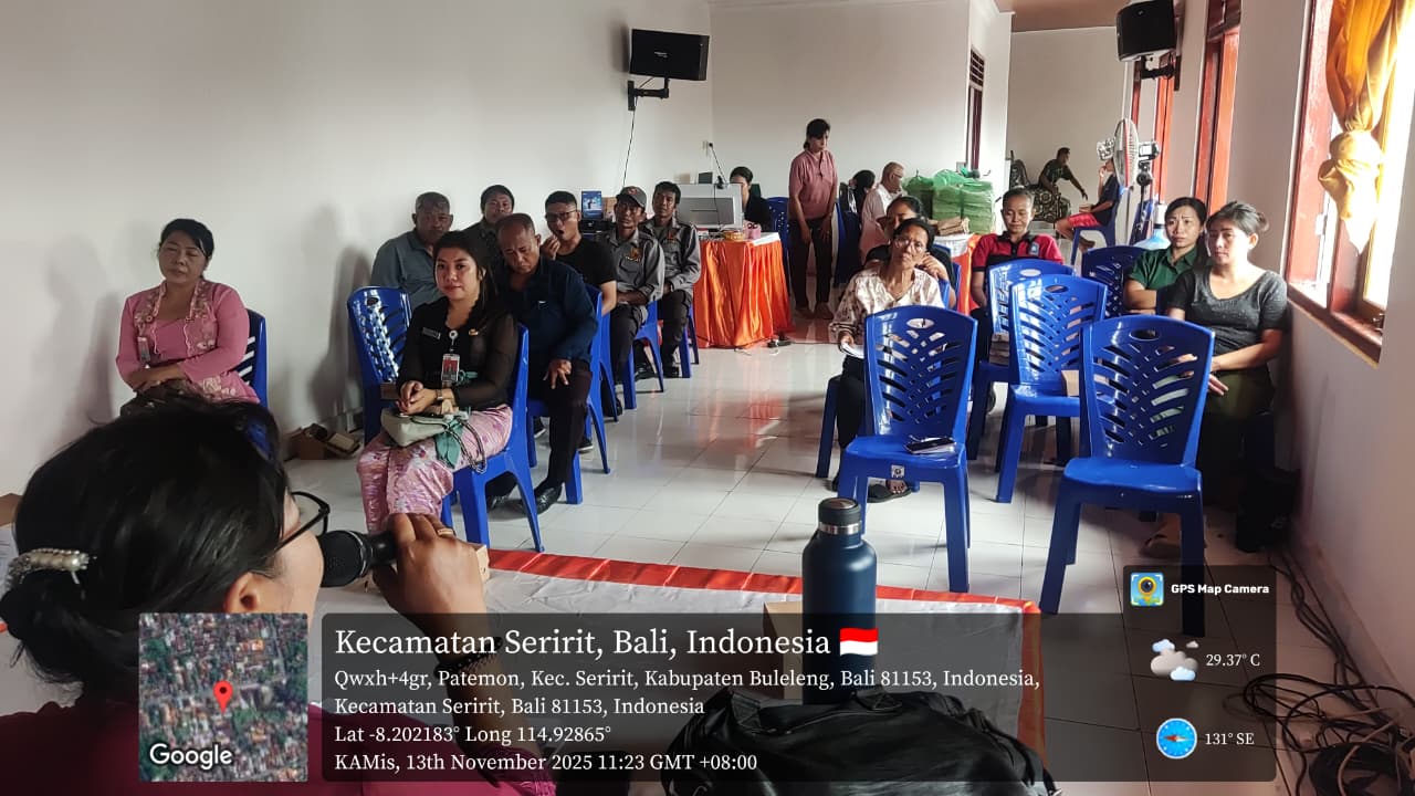 Kamis, 13 November 2025-Dinas Ketahanan Pangan dan Perikanan (DKPP) Kabupaten Buleleng melalui Bidang Distribusi dan Cadangan Pangan melaksanakan Sosialisasi Cadangan Pangan di Tingkat Rumah Tangga yang bertempat di Desa Patemon, Kecamatan Seririt. Kegiatan dihadiri Analis Ketahanan Pangan DKPP Buleleng (Nyoman Sukerni, S.H., M.Pd) bersama staf, dan didampingi staf PKK Desa Patemon dibuka oleh Perbekel Patemon.