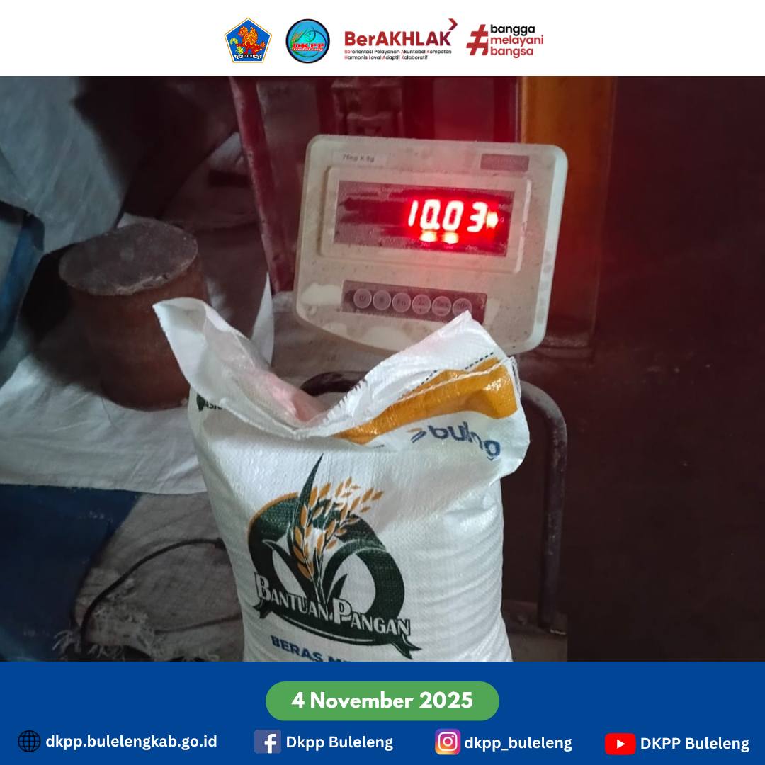 Dinas Ketahanan Pangan dan Perikanan (DKPP) Kabupaten Buleleng melalui Bidang Distribusi dan Cadangan Pangan yang diwakili oleh Ir. Ida Bagus Wirama dan Nyoman Sukerni, S.H., M.Pd bersama staf melaksanakan pemeriksaan kualitas terhadap beras dan minyak goreng yang akan digunakan dalam penyaluran CPP untuk Pemberian Bantuan Pangan periode Oktober-Nopember Tahun 2025 di Kabupaten Buleleng.