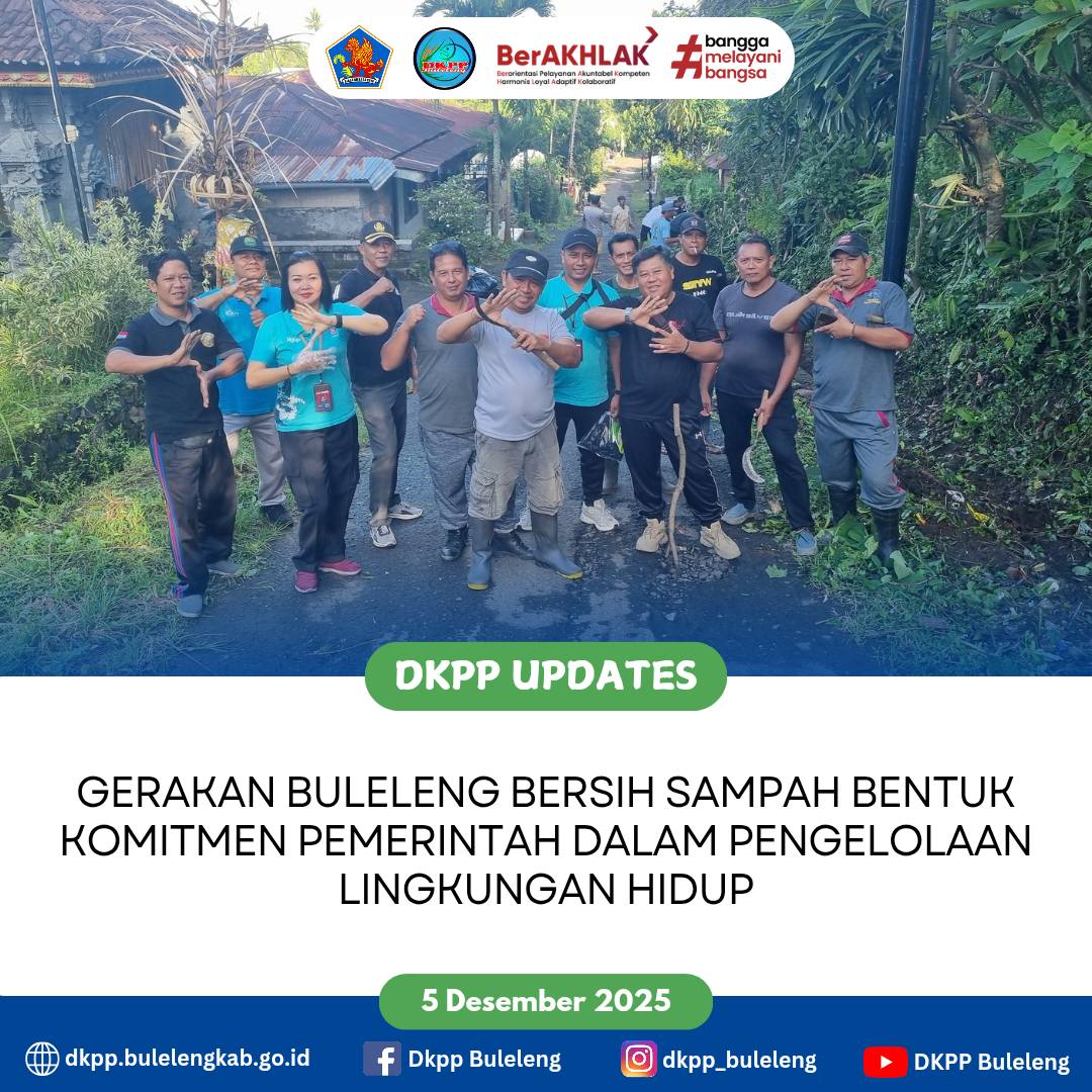 Jumat, 5 Desember 2025 - Dinas Ketahanan Pangan dan Perikanan (DKPP) Kabupaten Buleleng melaksanakan Gerakan Buleleng Bersih Sampah berlokasi di lingkungan Desa Alasangker, Kecamatan Buleleng sebagai tindaklanjut Surat Bupati Buleleng tentang Gerakan Buleleng Bersih Sampah yang disusun berdasarkan :
