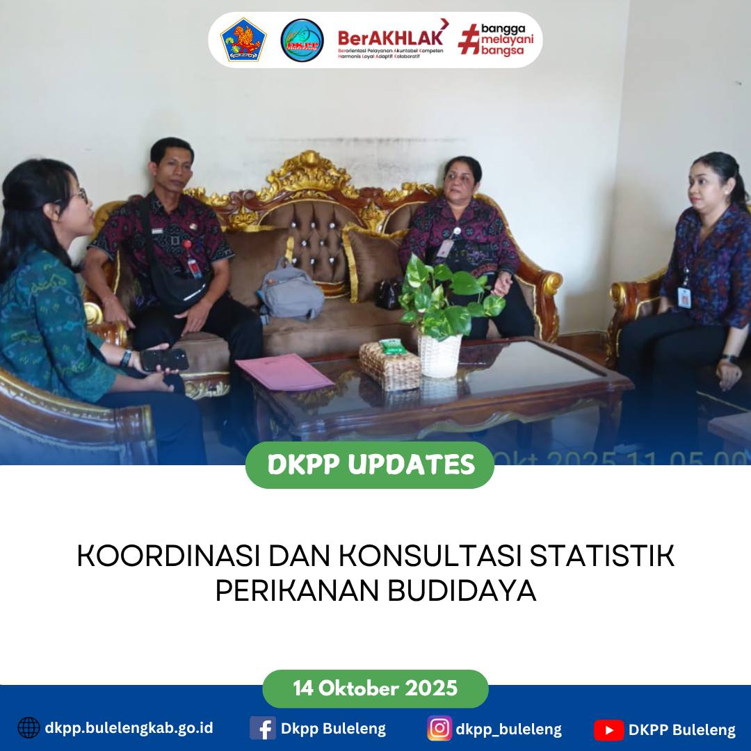 Selasa, 14 Oktober 2025 - Dinas Ketahanan Pangan dan Perikanan (DKPP) Kabupaten Buleleng melalui Bidang Produksi Perikanan melaksanakan koordinasi dan konsultasi statistik perikanan budidaya bertempat di Dinas Kelautan dan Perikanan Provinsi Bali.