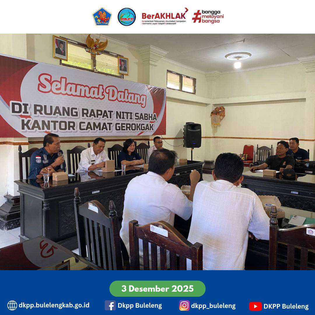 Plt. Kepala Dinas Ketahanan Pangan dan Perikanan Kabupaten Buleleng Gede Melandrat, SP. bersama Kabid Pemberdayaan Masyarakat Perikanan menghadiri Sosialisasi Kontribusi PT. Cendana Indopearls Tahun 2025 – 2026 terhadap program pembangunan Kabupaten Buleleng berdasarkan kesepakatan / MoU, bertempat di Kantor Desa Gerokgak, Kecamatan Gerokgak. Rabu (3/12).