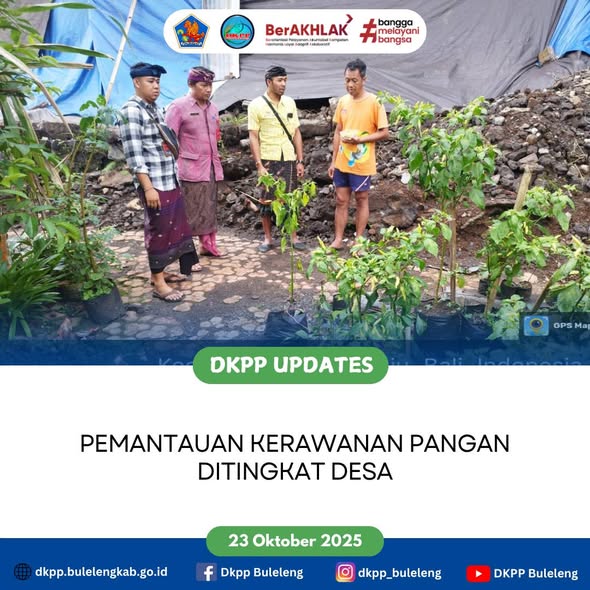 Kamis, 23 Oktober 2025 - Dinas Ketahanan Pangan dan Perikanan (DKPP) Kabupaten Buleleng melalui Bidang Ketersediaan dan Kerawanan Pangan melaksanakan Pemantauan Kerawanan Pangan berlokasi di Desa Sepang Kelod dan Desa Bongancina, Kecamatan Busungbiu dengan menyasar masyarakat yang mengembangkan komoditas tanaman cabai dan penyedia bahan pangan.