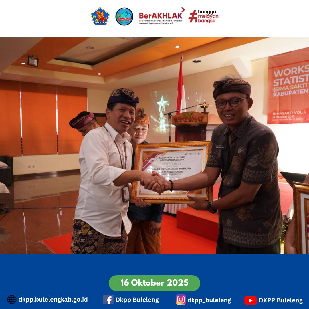 Dinas Ketahanan Pangan dan Perikanan (DKPP) Kabupaten Buleleng menghadiri Workshop Pembinaan Statistik Sektoral (Bima Sakti Vol 5 : Penyusunan Metadata) Kabupaten Buleleng 2025, bertempat di Hotel Banyualit Lovina. (16/10)