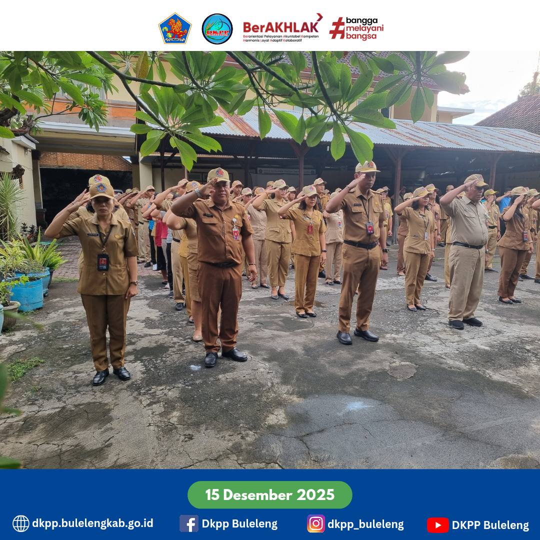 Apel Disiplin dalam rangka menjaga sikap kedisplinan di lingkungan Instansi Pemerintahan yang dipimpin Plt. Kepala Dinas Ketahanan Pangan dan Perikanan Kabupaten Buleleng Gede Melandrat, SP. dan diikuti peserta apel yang terdiri dari jajaran Pejabat Struktural, Pejabat Fungsional/Sub Koordinator, serta para staf bidang dan sekretariat. Senin (15/12)