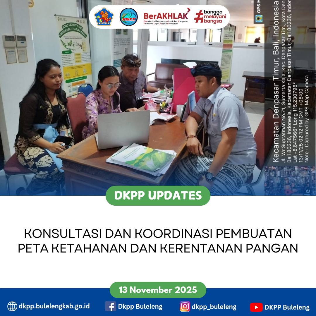 Dinas Ketahanan Pangan dan Perikanan (DKPP) Kabupaten Buleleng melalui Bidang Ketersediaan dan Kerawanan Pangan melakukan Konsultasi dan Koordinasi ke Bidang Ketahanan Pangan - Distanpangan Provinsi Bali perihal Pembuatan Peta Ketahanan dan Kerentanan Pangan / Food Security and Vulnerability Atlas (FSVA) dengan Metode Baru.
