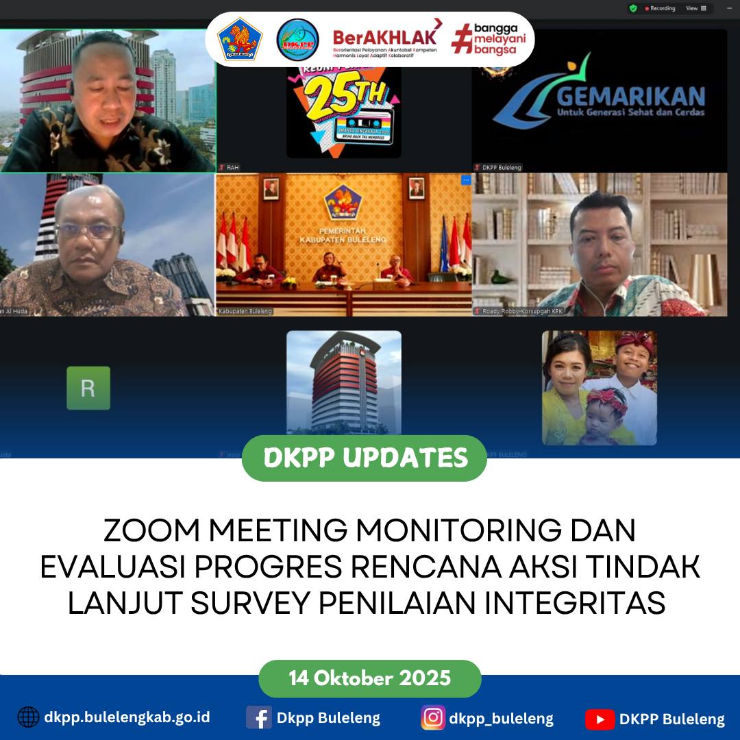 Dinas Ketahanan Pangan dan Perikanan (DKPP) Kabupaten Buleleng mengikuti zoom meeting terkait Monitoring dan Evaluasi Progres Rencana Aksi Tindak Lanjut Survey Penilaian Integritas (SPI) Tahun 2024 pada Pemerintah Daerah Kabupaten Buleleng yang dilaksanakan oleh Komisi Pemberantasan Korupsi (KPK) Republik Indonesia. (14/10)