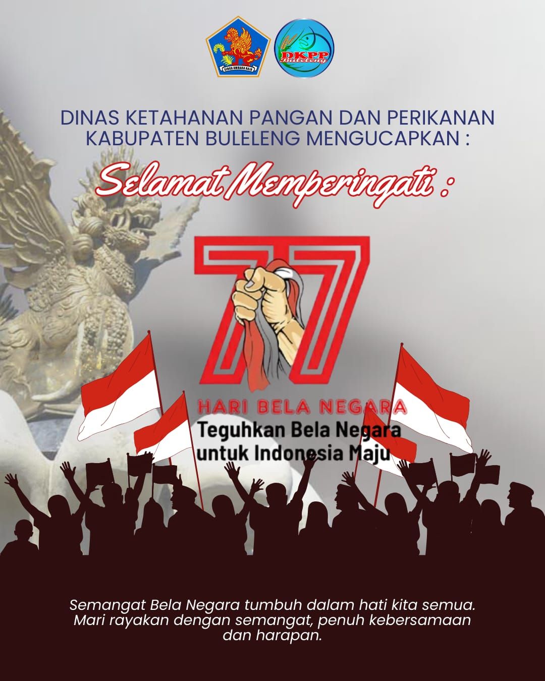 Dinas Ketahanan Pangan dan Perikanan (DKPP) Kabupaten Buleleng mengucapkan SELAMAT MEMPERINGATI HARI BELA NEGARA KE - 77 PADA 19 DESEMBER 2025 "Teguhkan Bela Negara untuk Indonesia Maju".